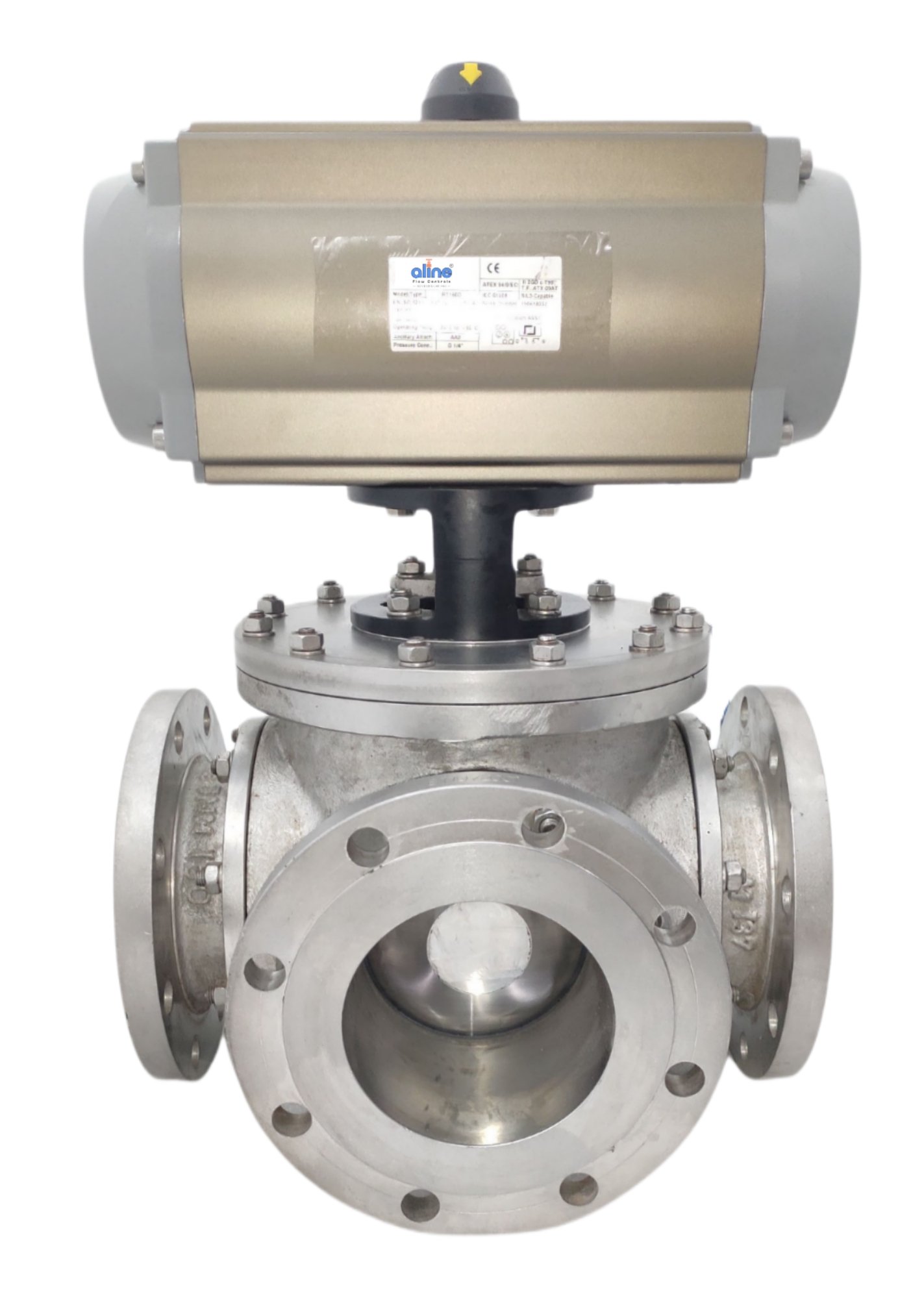 PNEUMATIC ACTUATOR OPERATED 3 WAY BALL VALVE F/E