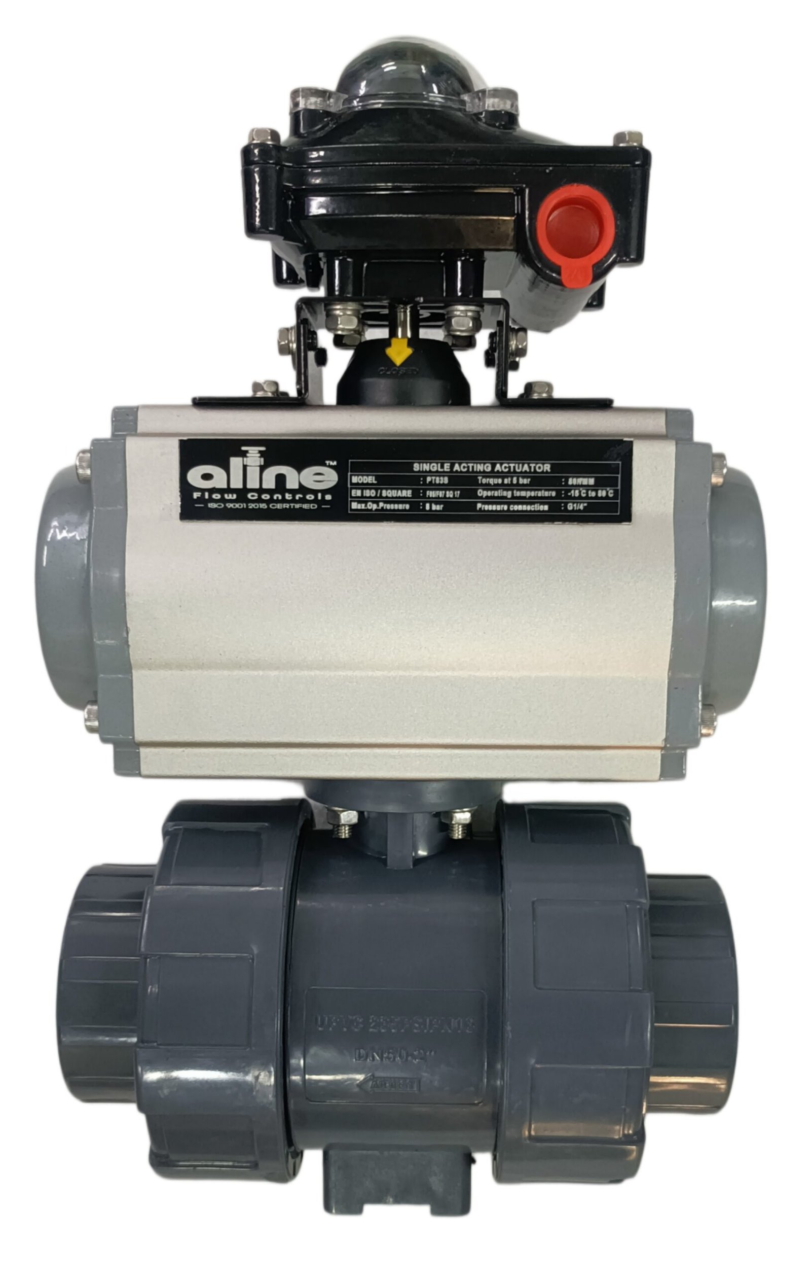 PNEUMATIC ACTUATOR OPERATED “UPVC BODY” 2 WAY BALL VALVE S/E